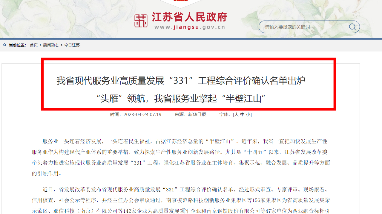 新立訊上榜江蘇省現代服務業高質量發展“331”工程綜合評價確認名單