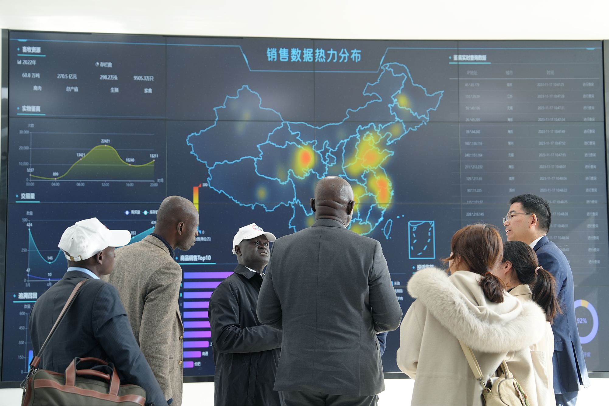 大家考察參觀交易中心,包含數據魔方(超算中心)、數字農業數據展區、華東農業AI數字人對話區、熱力算法銷售中心、5G物聯網接入專區、蘇青協作示范長廊、鹽之有味(1+9+N)專區等等,嘉賓們對琳瑯滿目的東西部農特產品充滿好奇,贊不絕口。