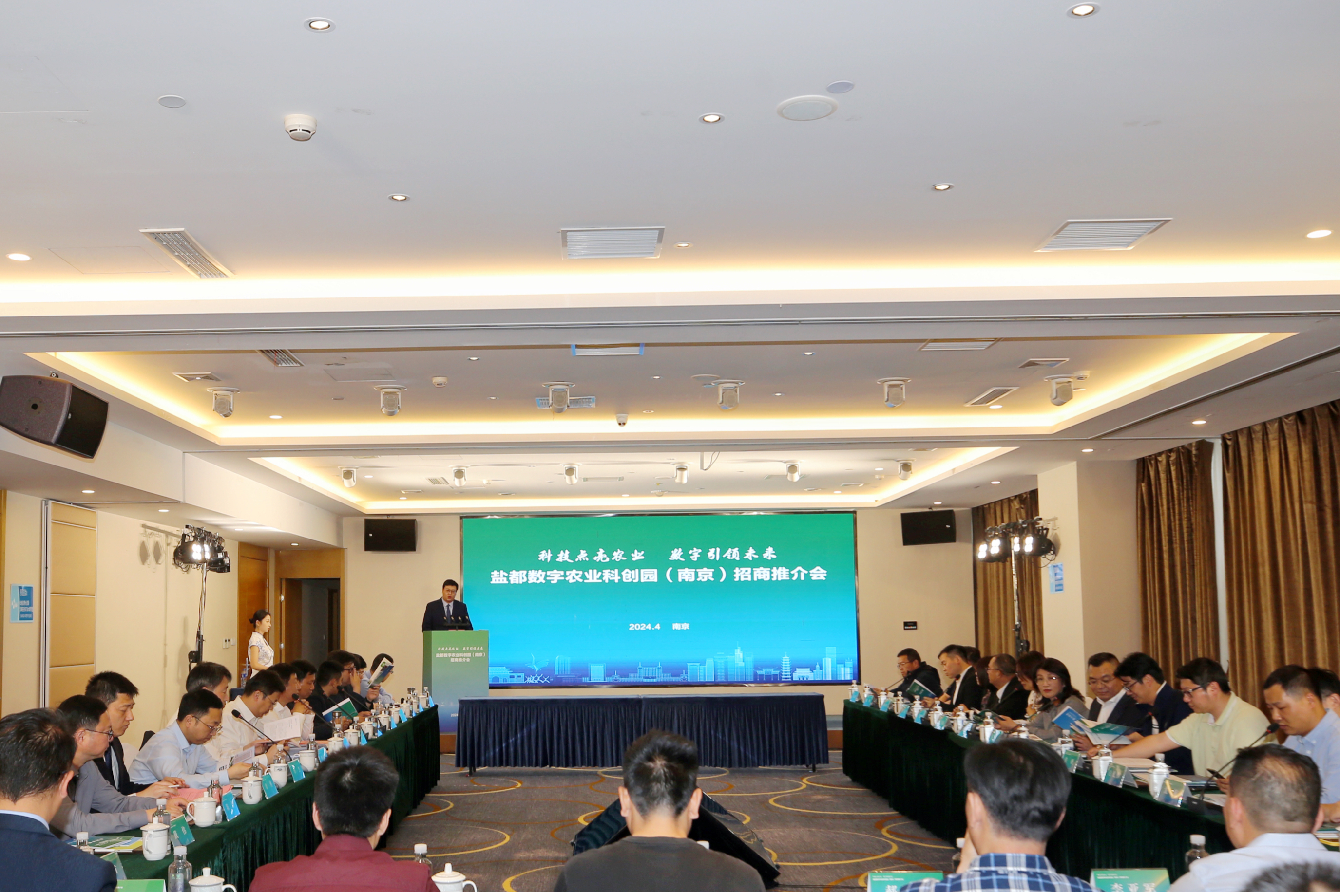 2024年4月25日,“科技點(diǎn)亮農(nóng)業(yè)、數(shù)字引領(lǐng)未來(lái)”鹽都數(shù)字農(nóng)業(yè)科創(chuàng)園(南京)招商推介會(huì)在南京雨花錦江都城酒店召開。鹽都區(qū)人民政府副區(qū)長(zhǎng)孫高明,鹽都區(qū)農(nóng)業(yè)農(nóng)村局局長(zhǎng)劉志貴,鹽都區(qū)供銷合作社黨委書記、主任吉連生,鹽都區(qū)國(guó)控集團(tuán)(鮮之都集團(tuán))董事長(zhǎng)李杰,鹽都區(qū)鹽瀆街道黨委書記蔣國(guó)興,鹽瀆街道黨委副書記徐博,南京郵電大學(xué)高性能研究所所長(zhǎng)、博士生導(dǎo)師季一木教授,浙江大學(xué)海洋學(xué)院博士生導(dǎo)師張帆教授,新立訊科技集團(tuán)董事長(zhǎng)(兼青海、華東交易中心董事長(zhǎng))毛霖,江蘇印加新能源科技股份公司董事長(zhǎng)毛海娟,華東農(nóng)產(chǎn)品交易中心副總經(jīng)理?xiàng)顟c慶,中山沃通電子科技公司董事長(zhǎng)王德勝,深圳朗道智通(農(nóng)業(yè)機(jī)器人)技術(shù)總監(jiān)何灝,農(nóng)芯(南京)智慧農(nóng)業(yè)研究院院長(zhǎng)吳文彪等企業(yè)代表、專家及嘉賓60余人出席參會(huì)。